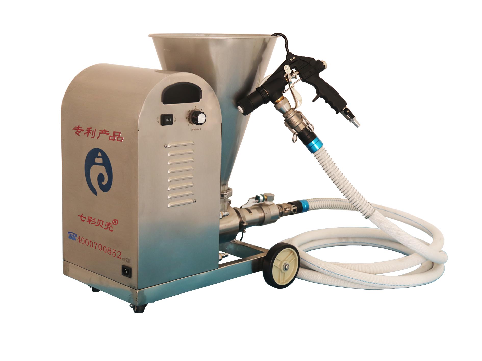 輸料管標配五米,噴槍標配三把噴槍。可根據(jù)不同材料不同效果更換噴槍使用。