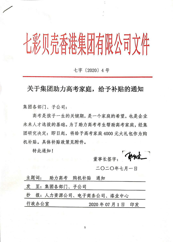 關(guān)于集團助力高考家庭,給予補貼的通知(圖文)